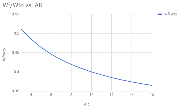 Example Consideration: Ratio of Fuel Weight over Takeoff Weight against the Aspect Ratio of the Wing